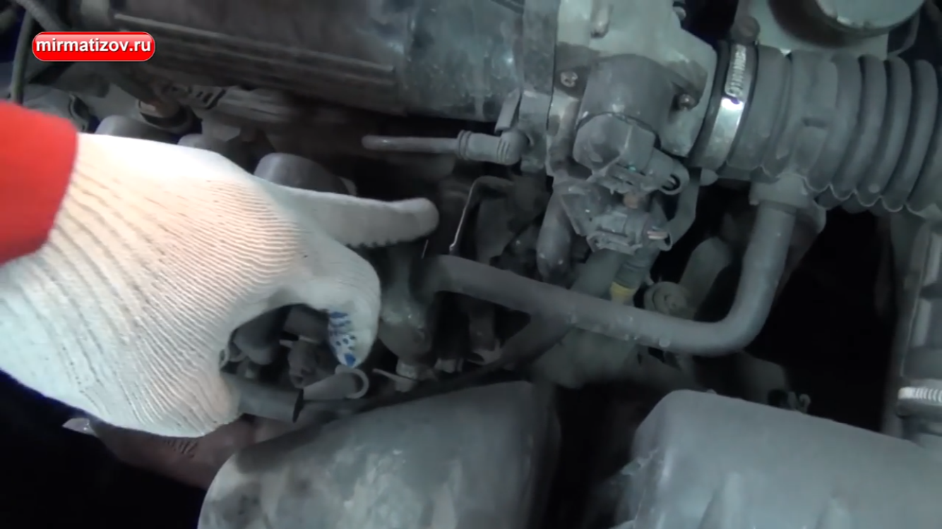 Разрежение, которое находится во впускном коллекторе, поступает из него по специальному шлангу, вот у «Deo Matiz» с торца. У большинства автомобилей его тоже можно определить.