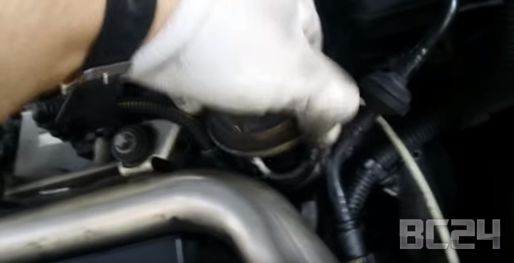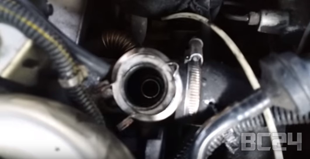 Особенно тщательно нужно вычистить то место, где соприкасается головка с полостью и перекрывает выход выхлопных газов. Вот эта головка — это и есть сам клапан. Она перекрывает доступ отработанных газов в те моменты, когда нет необходимости в их сжигании. А когда компьютер считает что машина может ехать на отработанных газах, вакуум втягивает этот шток — клапан открывается и отработанные газы из коллектора попадают в систему наддува повторно. Тем самым достигается максимальное сгорание топлива.