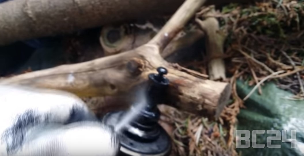 Вот эта направляющая, по которой ходит шток, практически заклеена нагаром, если так можно сказать.