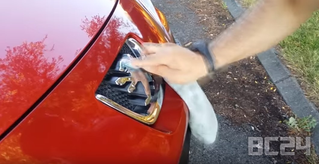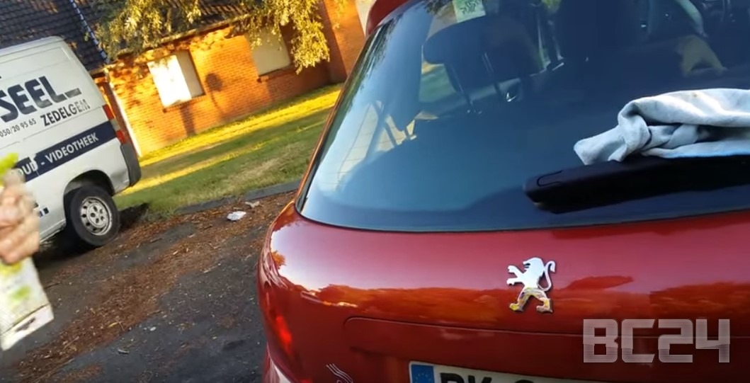 Наносим полироль равномерно на элемент тоненьким слоем и обязательно в тени. Полировать авто на солнце ни в коем случае нельзя. Давайте же начнем с эмблемы Пежо 206 (Бешеного ежика).