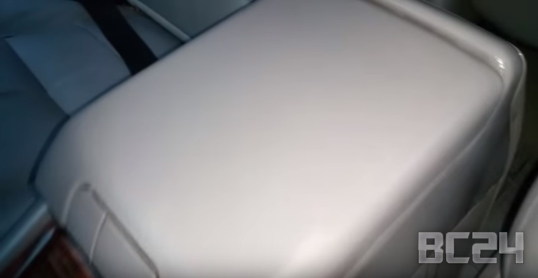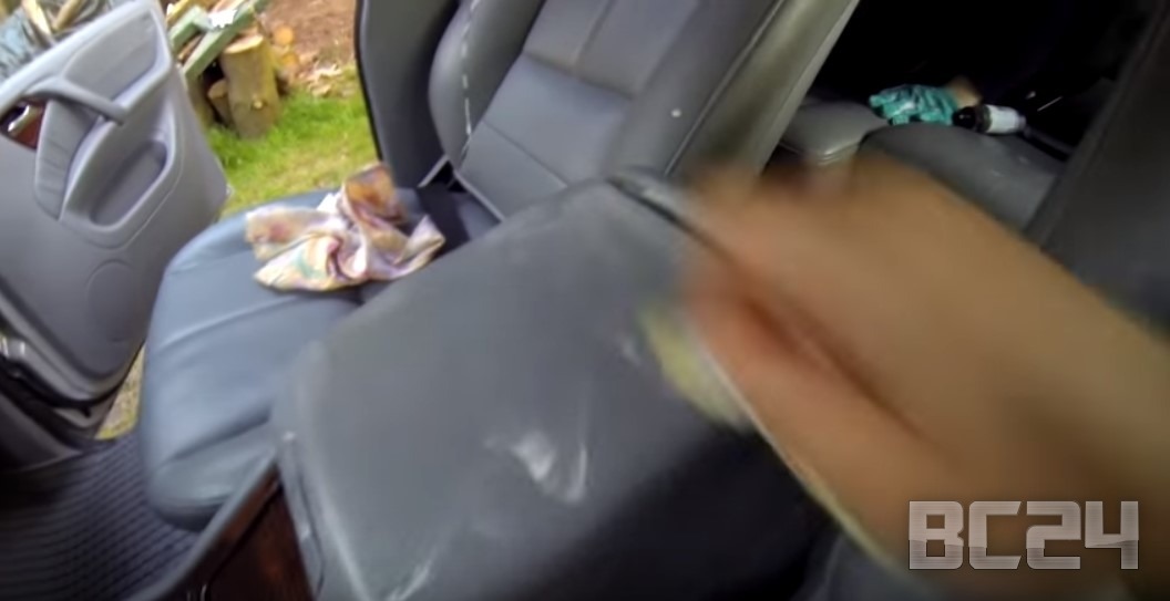 Нанесли в большом количестве очиститель кожи на наш подлокотник.