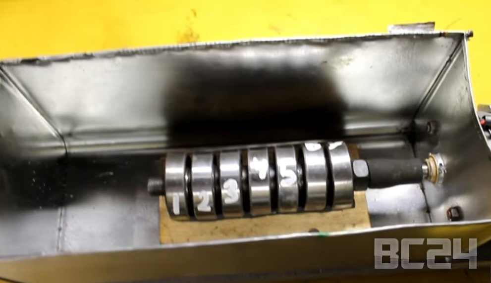Для этого теста мы взяли 7 одинаковых подшипников, закрепили их на одну ось, подключим к двигателю и будем вращать в специальной ванночке. Смазка, которую меньше всего смоет и будет победителем в этом испытании.