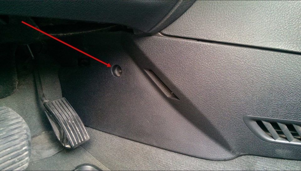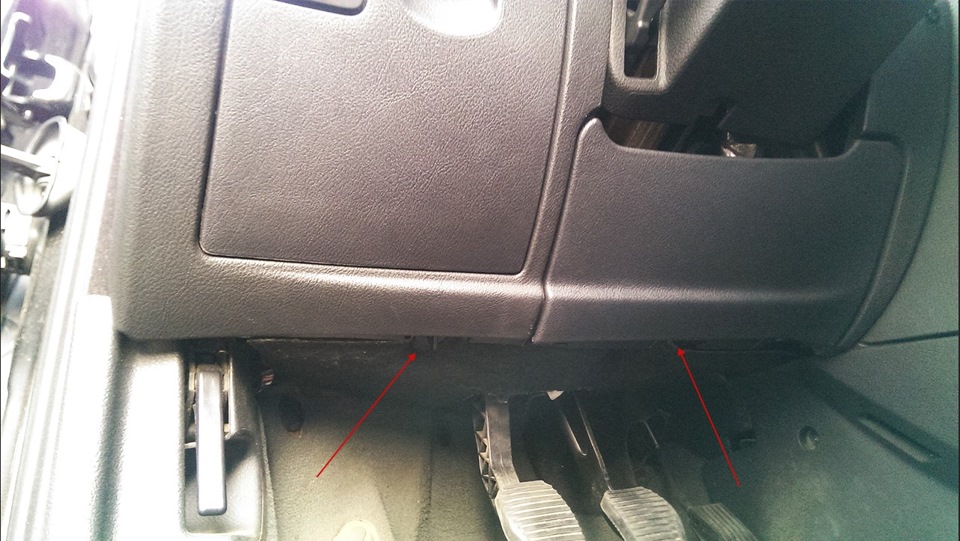 • открыть водительскую дверь и обнаружить над блоком педали часть панели, подлежащую демонтажу;